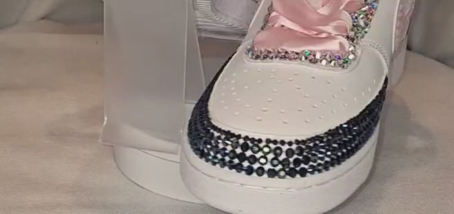 Each stone is hand placed paying attention to detail using industrial grade adhesive to ensure durability. You can choose your shoe style (Dunks, Airforce 1s, Converse, etc.. Any shoe style can be customized).